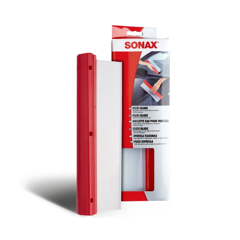 La espátula súper blanda de silicona para secado Sonax elimina un 80% de agua de casi todas las superficies y cristales sin dejar marcas. Es ideal para superficies grandes como capot, techo, parabrisas, ventanas entre otras.